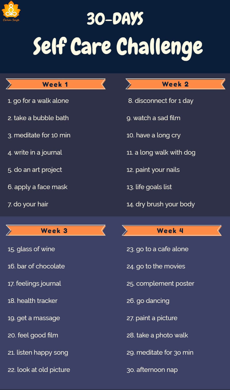 Additionally, you can also try this 30 Days self-care Challenge by Calm Sage to reach your self-care goals within a month. You Can download this free printable or save this URL.