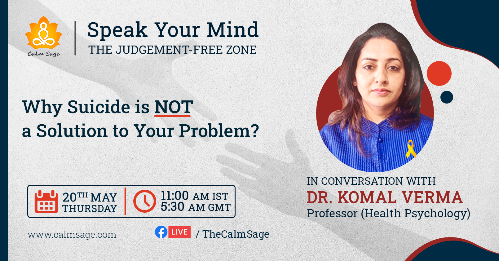 To bring inspiration and words of wisdom to individuals who may need it, we are hosting a session on “Why Suicide Is NOT A Solution To Your Problem” with a Health Psychology Expert.